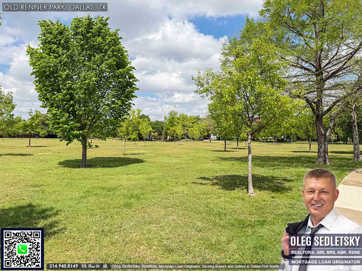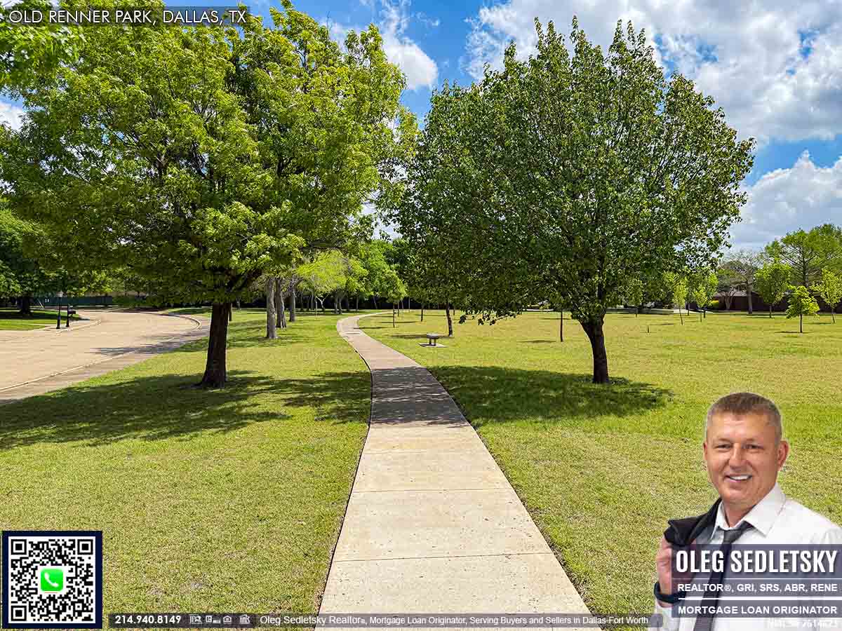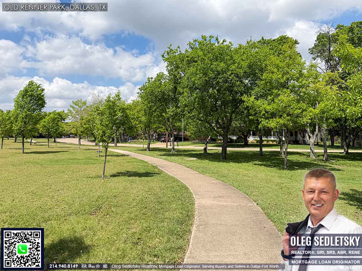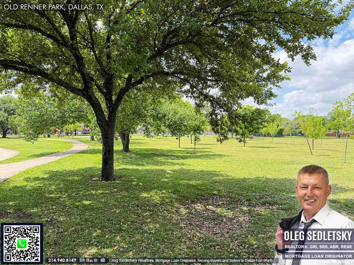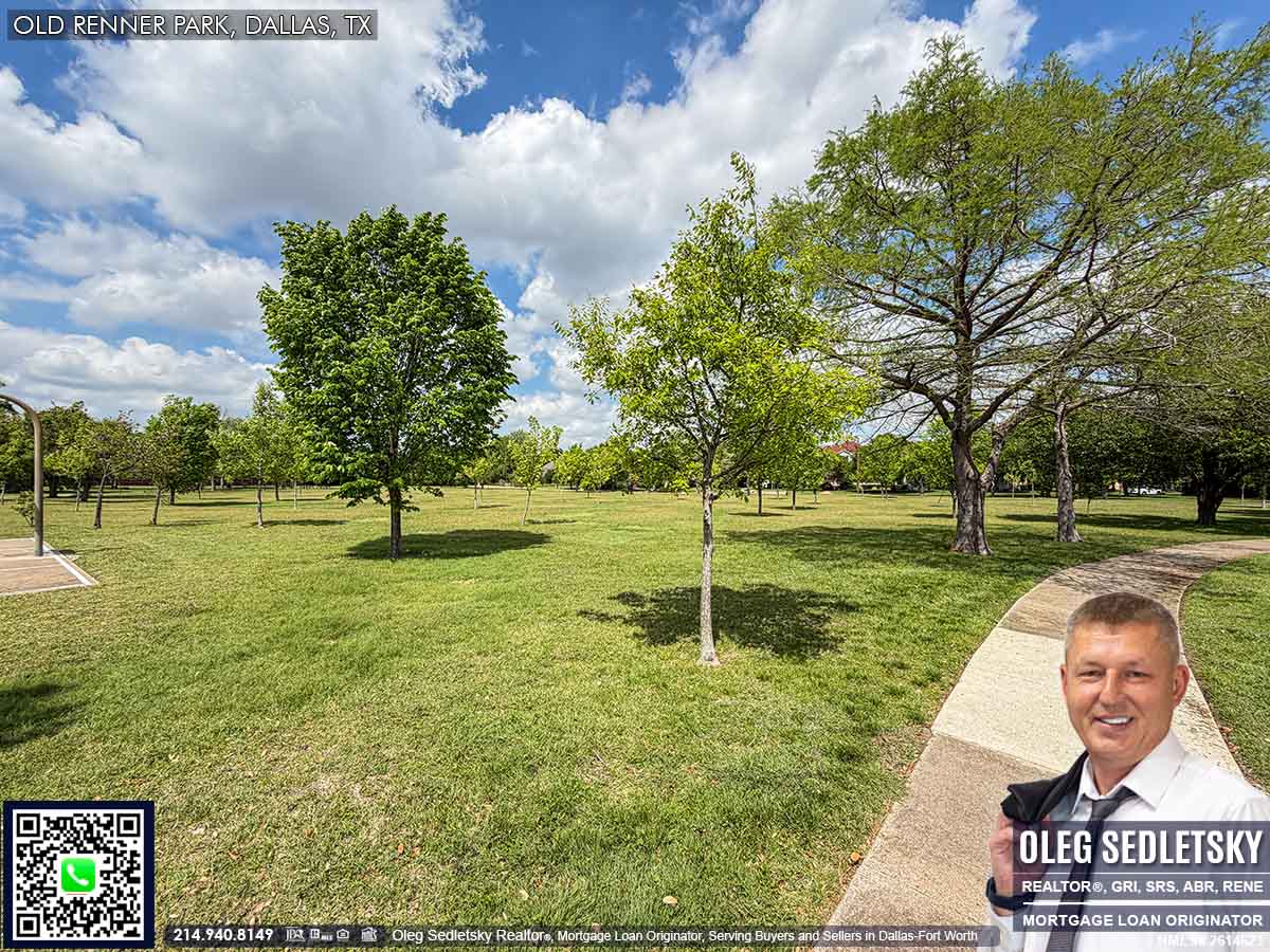 Hi there, I’m Oleg Sedletsky, your local Realtor and Mortgage Loan Originator serving home buyers and sellers in the Dallas-Fort Worth area. Helping people find more than just a house is what gets me up in the morning; I love showing my clients what makes each neighborhood special and why Dallas is such a great place to call home. Outdoor spaces here really add something extra to everyday living, and Old Renner Park is a perfect example.