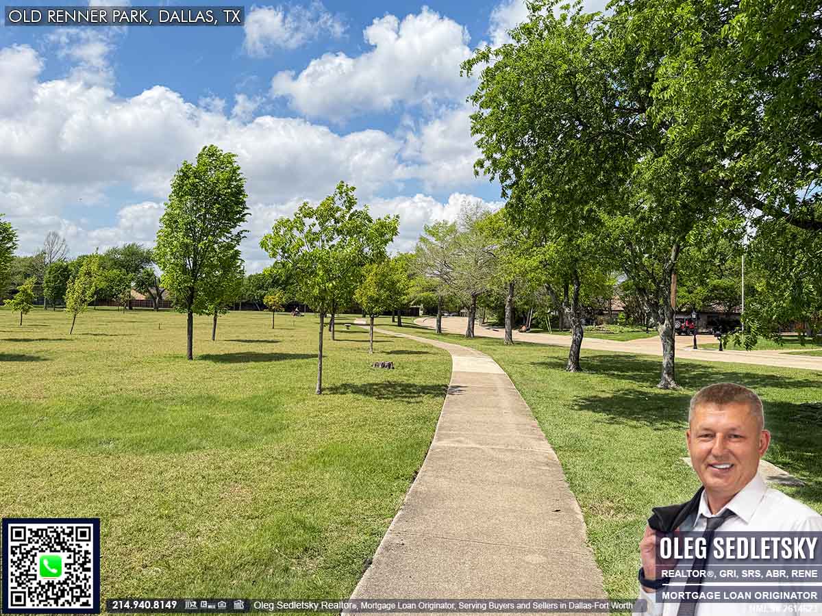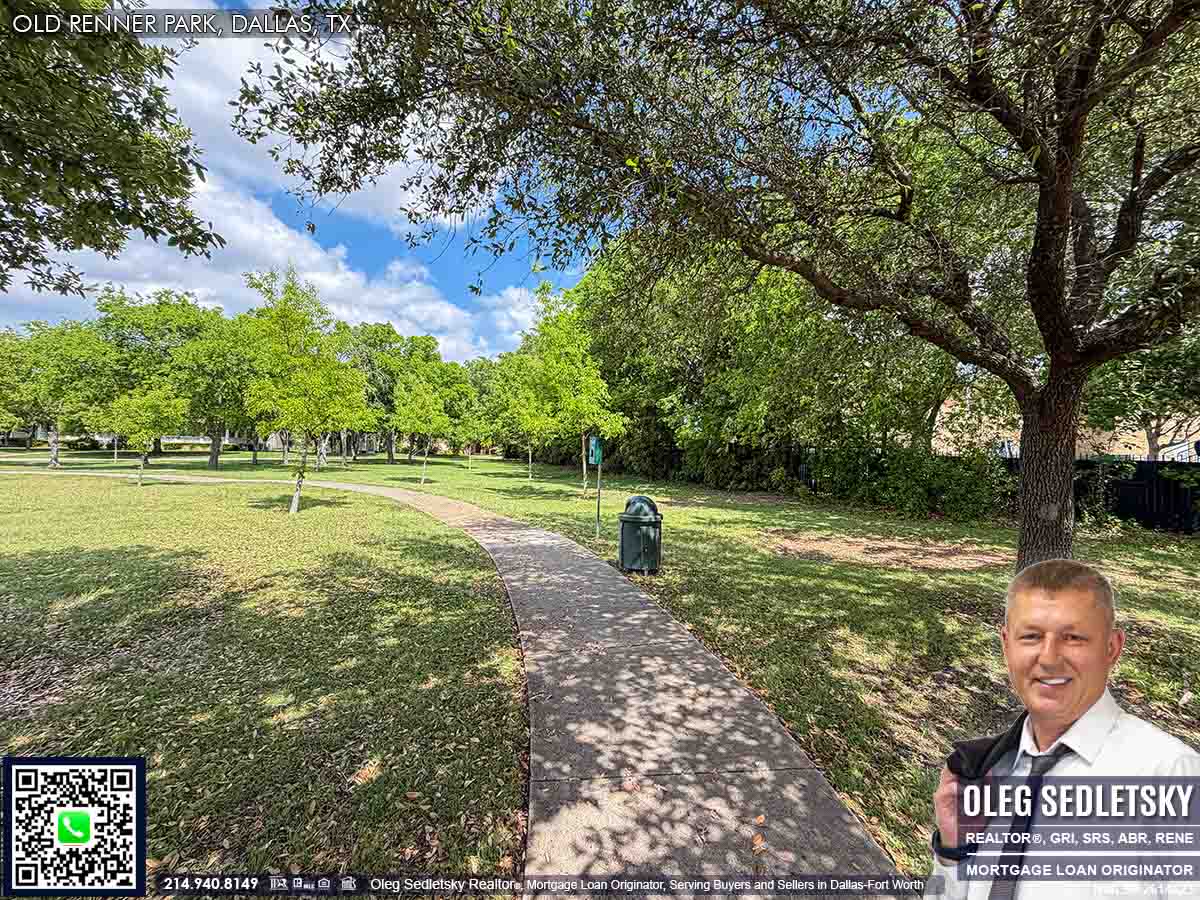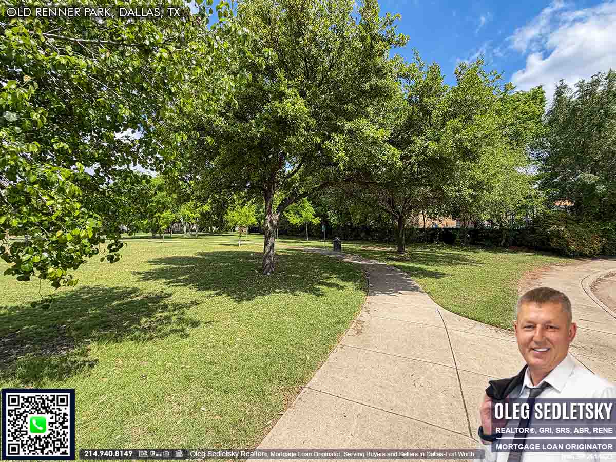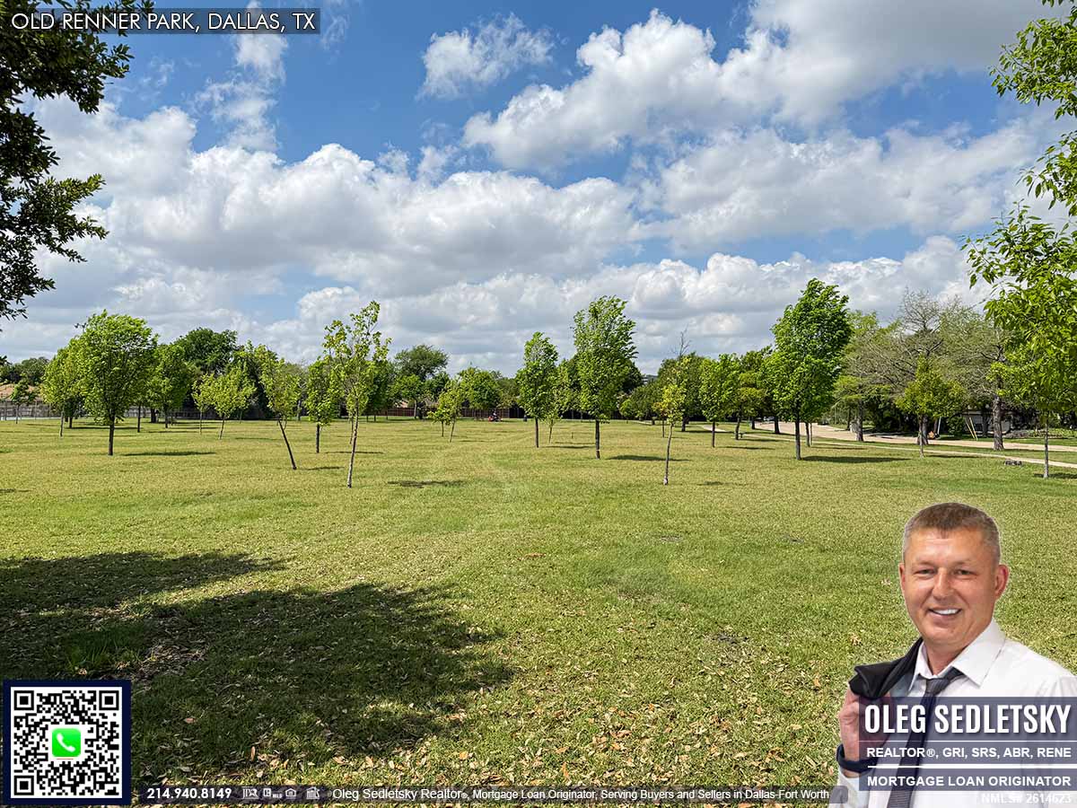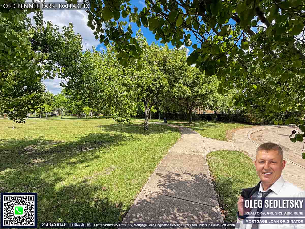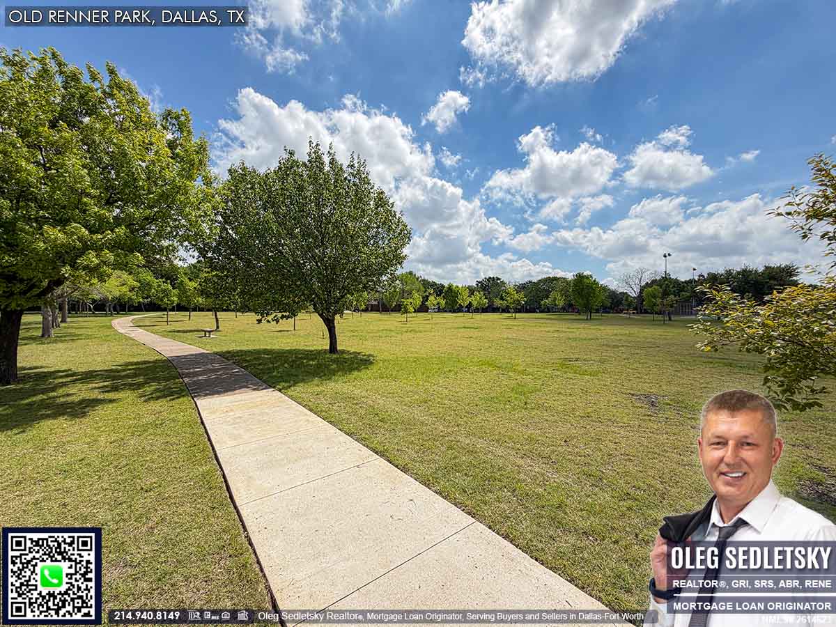 Hi there, I’m Oleg Sedletsky, your local Realtor and Mortgage Loan Originator serving home buyers and sellers in the Dallas-Fort Worth area. Helping people find more than just a house is what gets me up in the morning; I love showing my clients what makes each neighborhood special and why Dallas is such a great place to call home. Outdoor spaces here really add something extra to everyday living, and Old Renner Park is a perfect example.