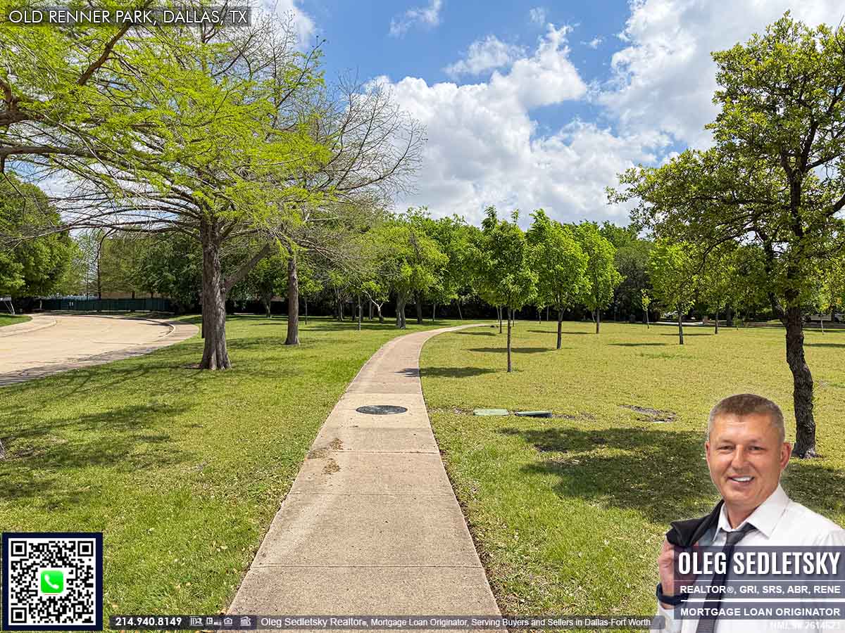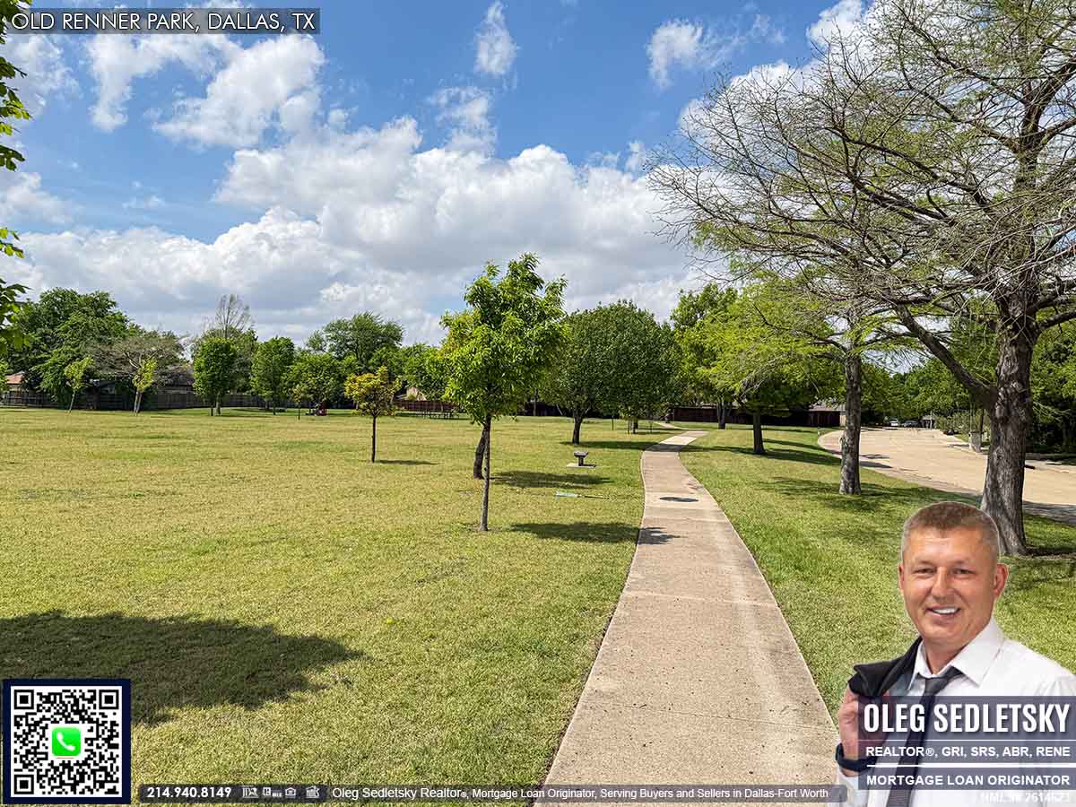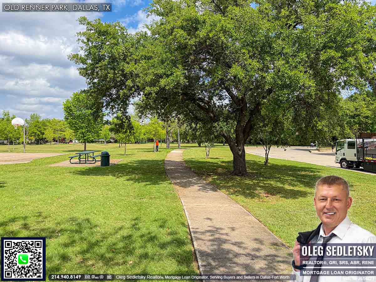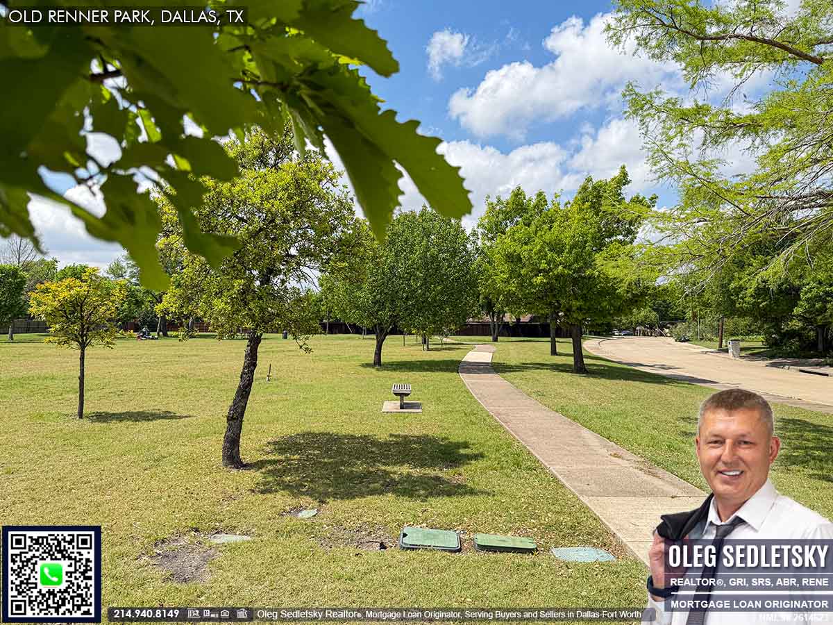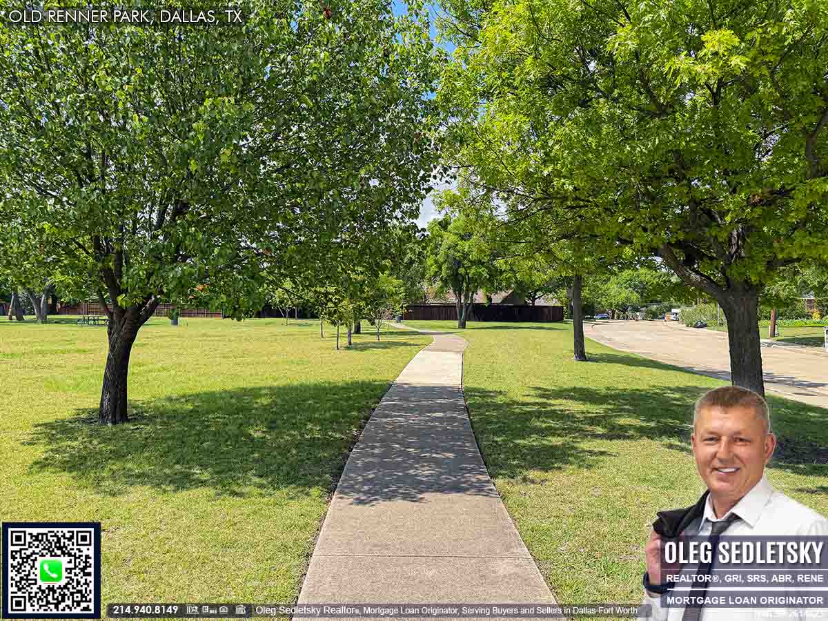 Hi there, I’m Oleg Sedletsky, your local Realtor and Mortgage Loan Originator serving home buyers and sellers in the Dallas-Fort Worth area. Helping people find more than just a house is what gets me up in the morning; I love showing my clients what makes each neighborhood special and why Dallas is such a great place to call home. Outdoor spaces here really add something extra to everyday living, and Old Renner Park is a perfect example.