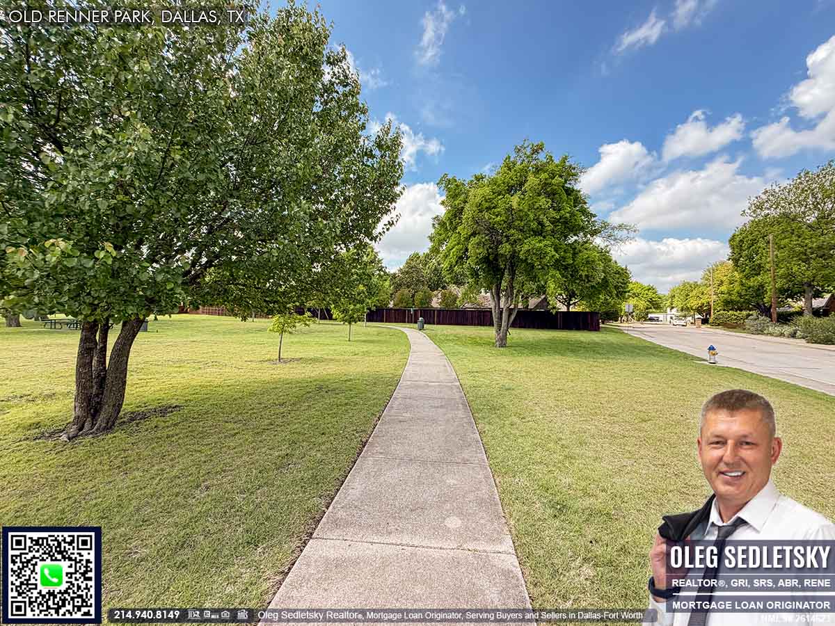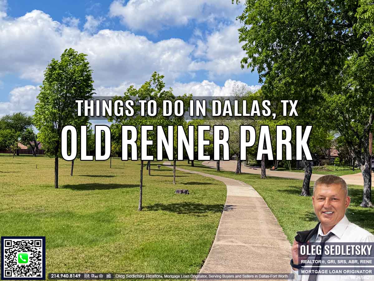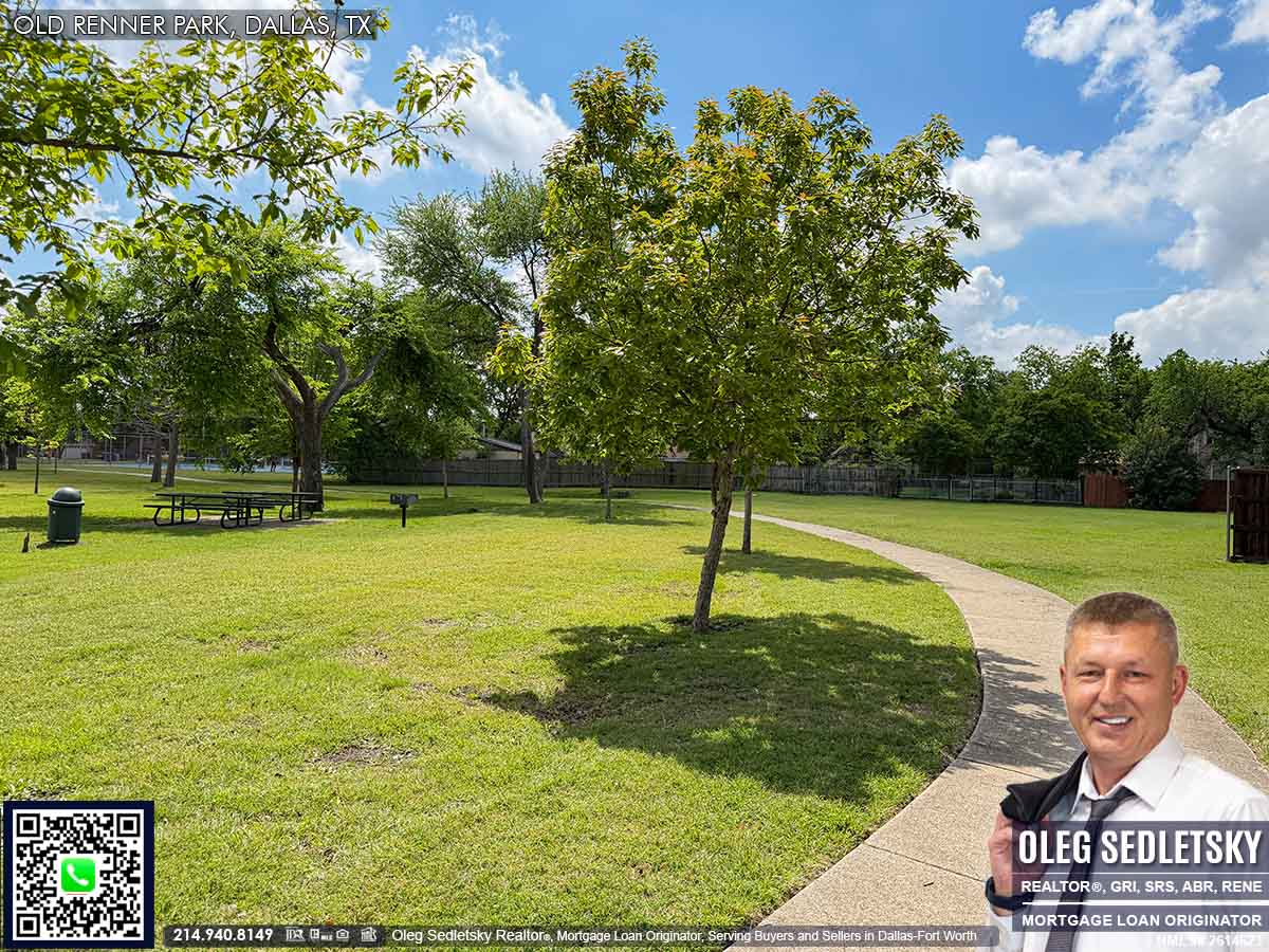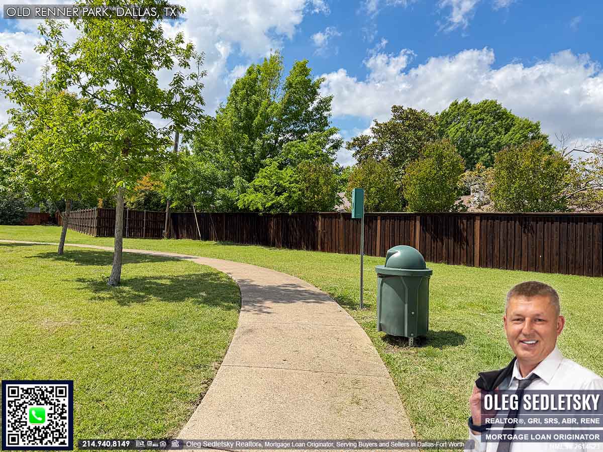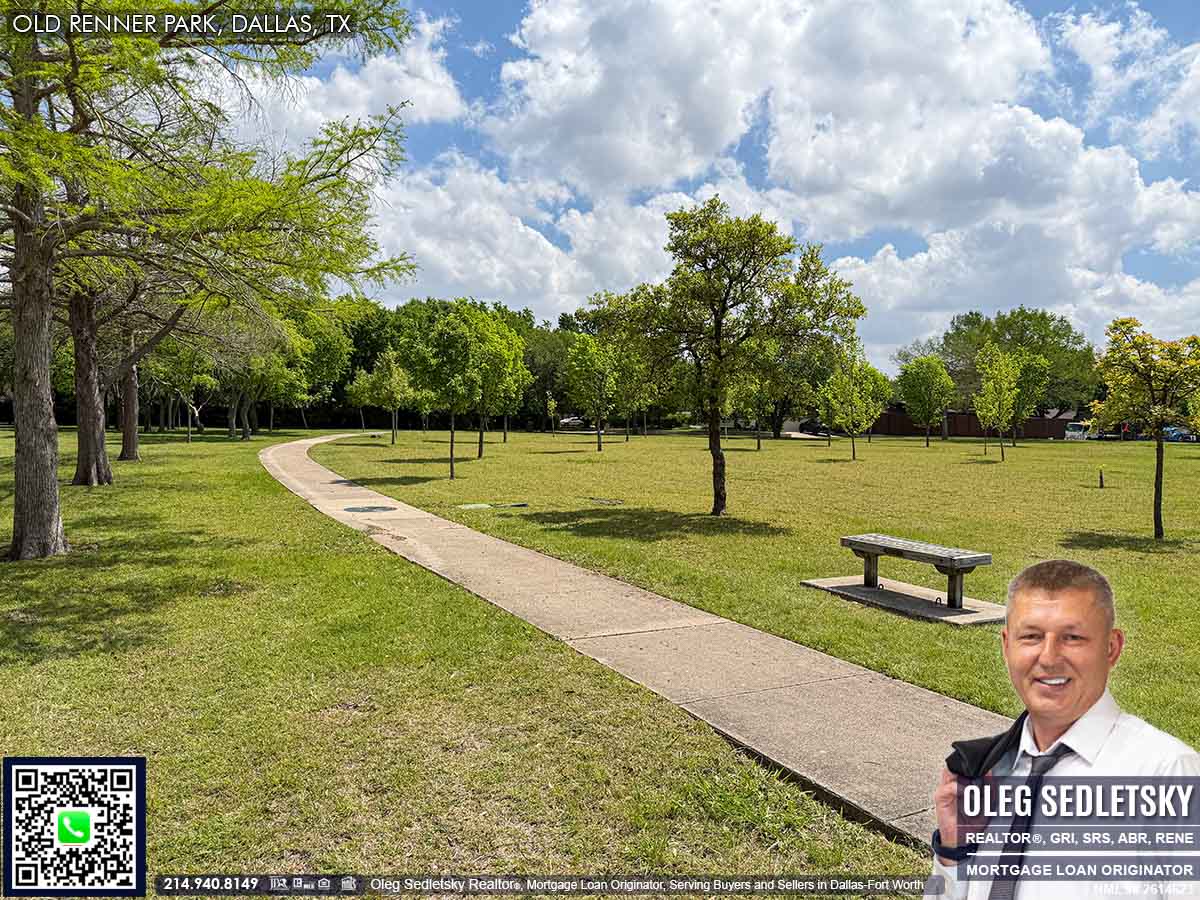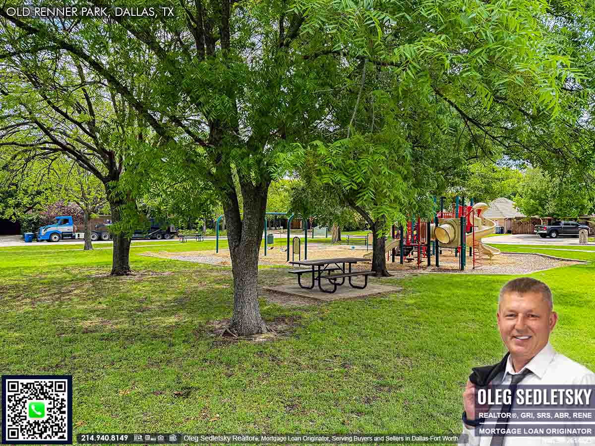 Hi there, I’m Oleg Sedletsky, your local Realtor and Mortgage Loan Originator serving home buyers and sellers in the Dallas-Fort Worth area. Helping people find more than just a house is what gets me up in the morning; I love showing my clients what makes each neighborhood special and why Dallas is such a great place to call home. Outdoor spaces here really add something extra to everyday living, and Old Renner Park is a perfect example.